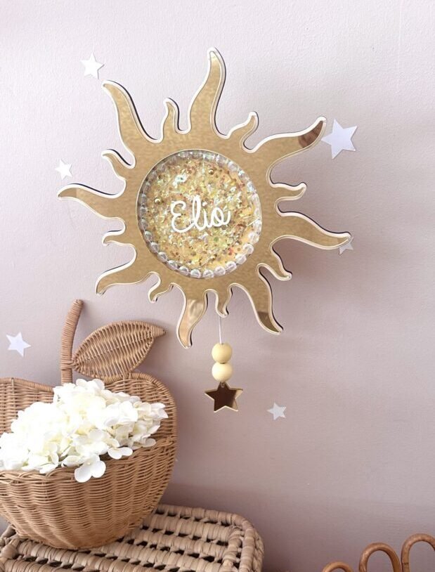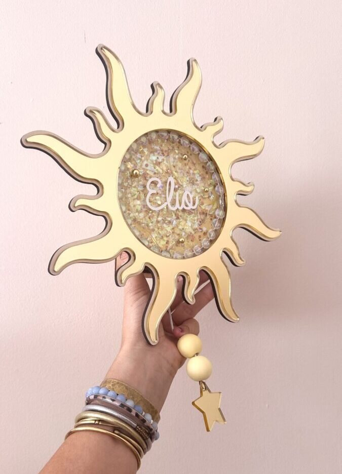 Sublime Boite à musique soleil, des paillettes mobiles sont à l’intérieur, ce qui ajoute une touche de magie. Un vrai bijou, idéal pour une chambre bébé. Elle est montée à la main avec beaucoup de minutie. Ce modèle s’illumine dans le noir, si vous choisissez l’option de la guirlande lumineuse grâce à une guirlande led, (les piles CR 2032 sont fournies).